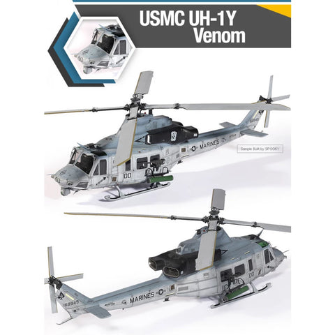 The Academy 1/35 scale UH-1Y Venom kit replicates the modernised Huey operated by the United States Marine Corps. Equipped with upgraded engines, a four-blade rotor, and advanced avionics, the UH-1Y excels in troop transport, close air support, and medevac roles. This kit captures the versatility and modern features of this key USMC utility helicopter.