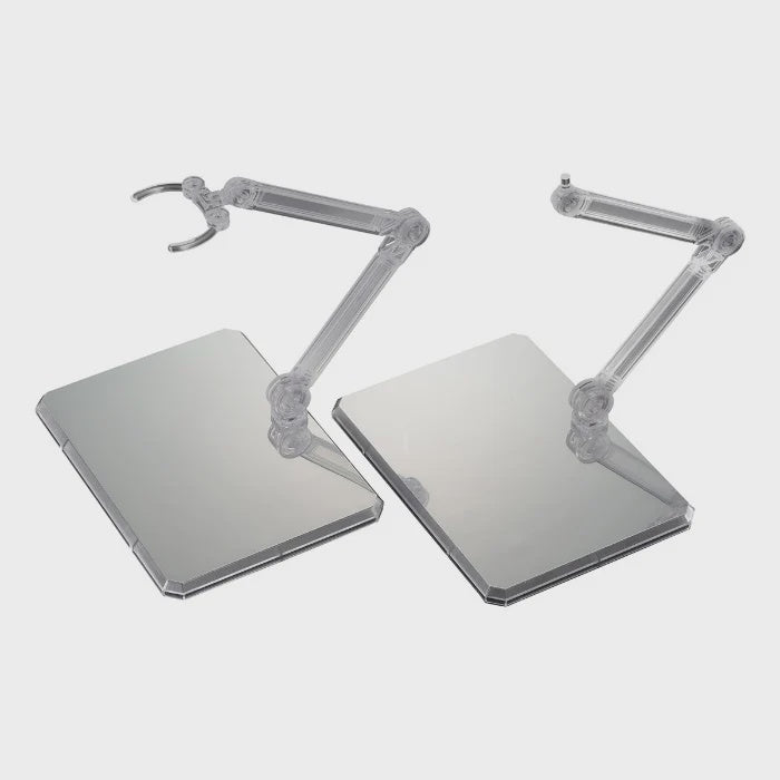 Bandai's extremely useful Action Base 6 (Clear Color), with a structure that can stably hold 1/144-scale models, is now available as a set with mirror stickers that expand the range of your display options! Use the mirror stickers to enjoy different angles of display. A protective film is attached to the mirror sticker, so you won't have to worry about fingerprints while you're putting the sticker in place, and an auxiliary sticker for peeling off the protective film is included as well. You'll get two bases in the set. Order yours today!