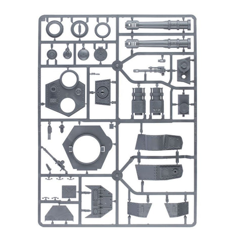 You’ll also find cosmetic options, like extra stowage, additional armour plating on the treads, tow hooks, fuel, and options for gunners and tank commanders in the hatches – including a choice of different heads. You can alternatively build the tank commander on foot, armed with a bolt pistol or laspistol in one hand, and a power sword or pointing hand in the other. No matter how you build it, your bits box will appreciate all the extra plastic left over.