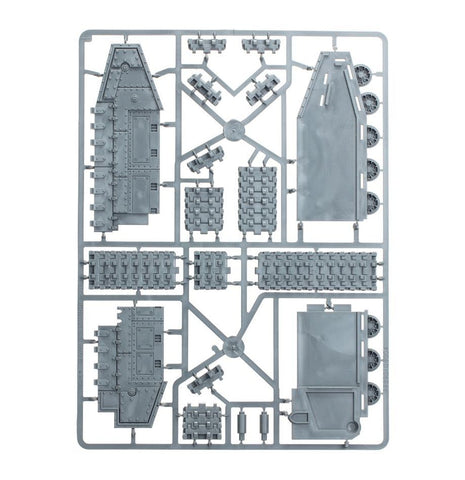 This gargantuan multipart plastic kit builds a super-heavy Baneblade, a thundering tank that wields a full arsenal and is capable of absorbing punishment that would annihilate a small army. If you’re looking for a lynchpin around which a mighty armoured column can be built, a super heavy tank is a fine choice that can shock your foes and soak up incredible amounts of firepower, sparing the rest of your army. It is armed with a mighty baneblade cannon and co-axial autocannon on the turret, plus a demolisher cannon on the forward hull, 2 lascannons on side turrets, twin heavy bolters on a forward hull turret, 2 twin heavy flamers in sponson mounts, and a heavy stubber in a pintle mount atop the turret. The sponson flamers can be replaced with another 2 twin heavy bolters, and extra sponsons can be added with additional lascannons and either twin heavy bolters or twin heavy flamers. That’s a LOT of firepower.