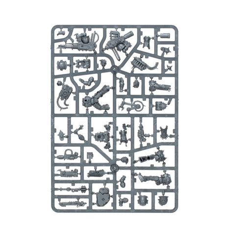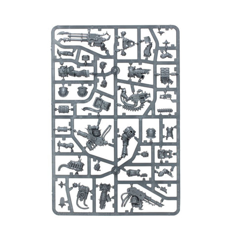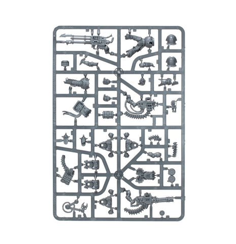 Each of the Legionaries can be armed with a boltgun or bolt pistol and an Astartes chainsword, and there are 11 interchangeable heads and 21 interchangeable shoulder pads. You can arm Legionaries with a plasma gun, flamer, meltagun, heavy bolter or missile launcher, and there are parts to build up to 2 Aspiring Champions.