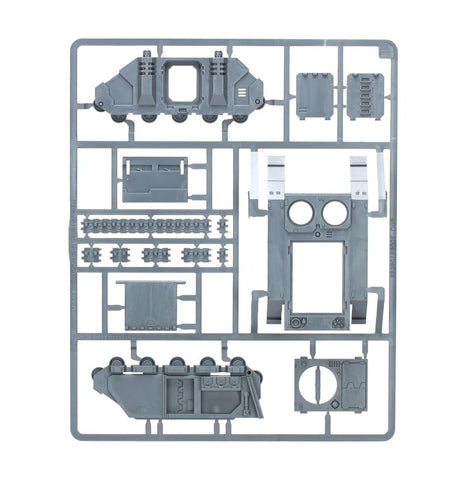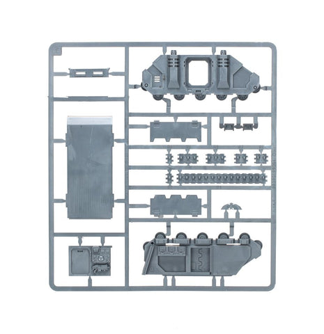 The Chaos Rhino has some cosmetic options, including Chaos icons, trophy racks, chains, hooks, dozer spikes, and corrupted armour plates. It can be armed with a pintle-mounted combi-bolter or combi-weapon, and includes options for a Chaos Space Marine gunner or a closed hatch. It can also sport an optional rooftop havoc launcher for additional long-ranged firepower.