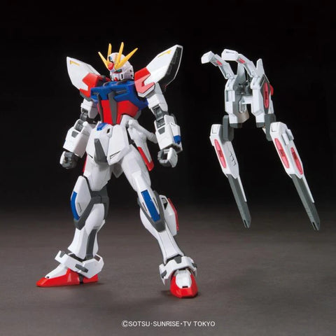 The Star Build Strike Gundam Plavsky Wing from Gundam Build Fighters is ready for battle! In addition to an array of weapons, Star Build Strike Gundam Plavsky Wing includes beam wing effects, a beam rifle, 2 beam sabers, a shield, and a rear beam cannon.