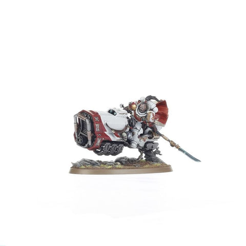 This multipart plastic kit builds Suboden Khan, an aggressive leader for your White Scars Space Marine armies in games of Warhammer 40,000. No quarry can evade him as he leads the hunt from atop his custom grav bike, before delivering the killing strike with his lethal hunting lance, Stormtooth. This miniature is packed with details, including the claimed heads of previous victims and a billowing cloak. Suboden can be assembled with a choice of two heads – bare or helmeted – offering some customisation to your Khan.