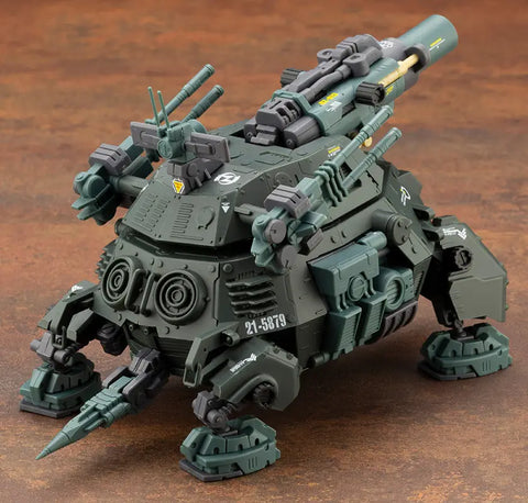 The RZ-013 Cannon Tortoise, the heavy artillery's main force, returns to Kotobukiya's second-generation "HMM Zoids" lineup in a new molding color! New decals are included, and the cockpit and other clear parts have been added as bonus parts in both clear orange and colorless clear molding, so they can be painted in your favorite clear color. Another bonus part is the same joint caps as are included with the Redler. The cockpit can be opened and closed to board a pilot figure; the Zoid core built into the torso can be attached and detached. An original "HMM"-series gimmick allows it to be transformed into the underwater diving mode! The liquid-cooled charged particle beam cannon and turret are movable; the turret can rotate a full 360 degrees. The body side hatch where the Zoid Core is stored can be opened and closed. You need this masterpiece machine in your collection -- order yours today!
