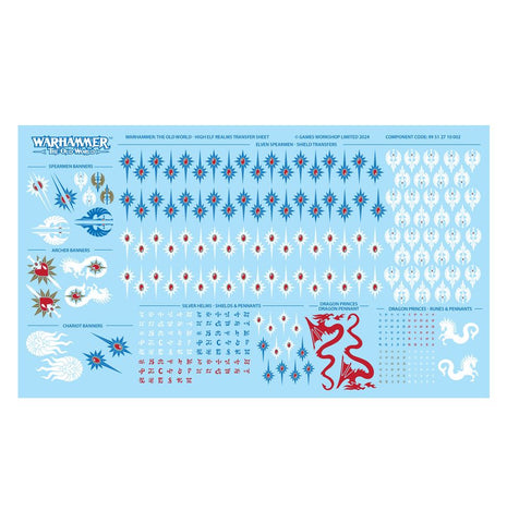 This kit contains 946 plastic components, 2x Citadel 50mm by 100mm Rectangle Bases, and 73x Citadel 25mm Square Bases. This set also includes 1x High Elf Realms Transfer Sheet, containing 356 high-quality waterslide transfers to decorate your models.