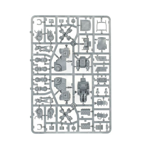 This multipart plastic kit builds one Armoured Sentinel – a light walker toting heavy firepower on an sturdy frame. There are loads of options in the kit, allowing you to arm your Sentinel for any battlefield role with an autocannon, heavy flamer, missile launcher, multi-laser, or plasma cannon. You can additionally equip your walker with a poseable Sentinel chainsaw for more melee punch, and a hunter-killer missile for extra firepower. You'll also find plenty of cosmetic options, including a searchlight and smoke launchers, stowage and spare equipment racks, and extra fuel canisters.